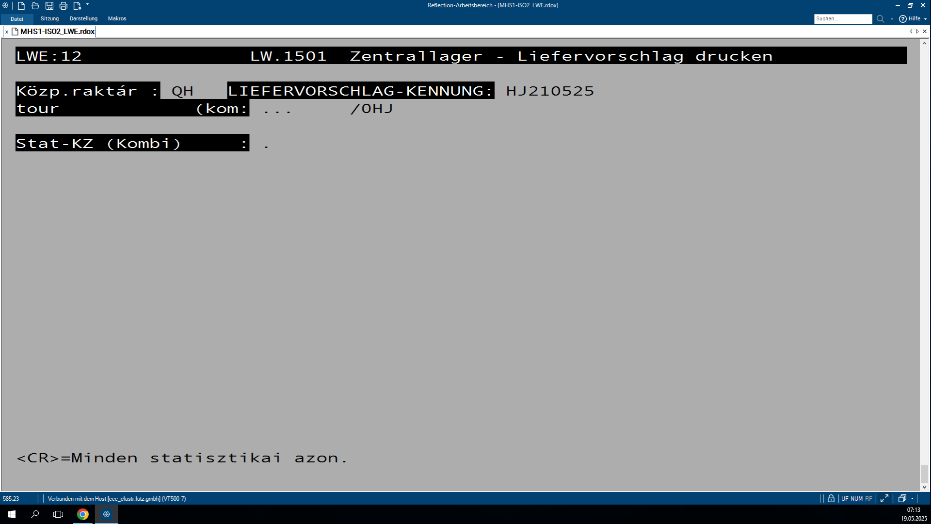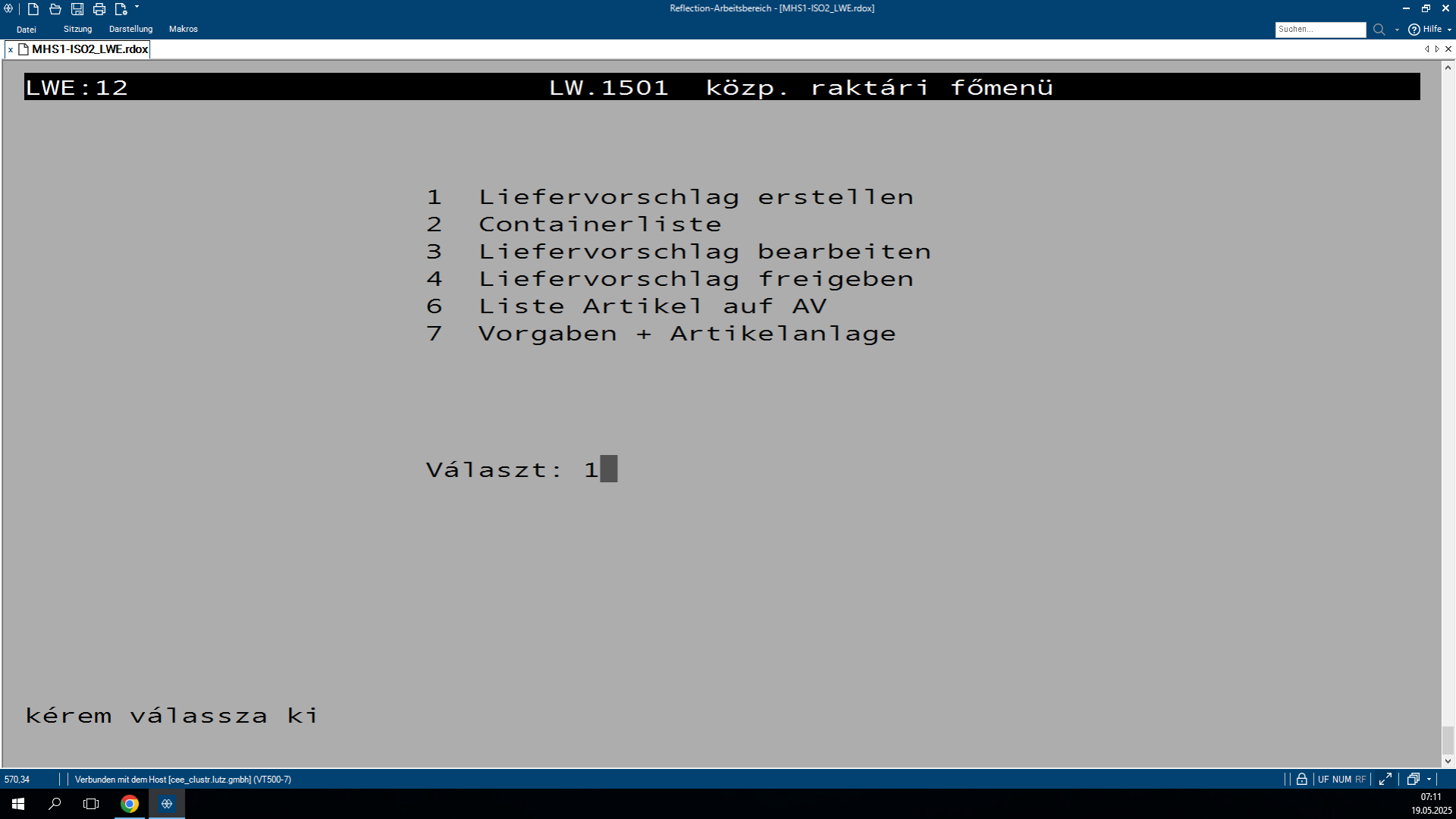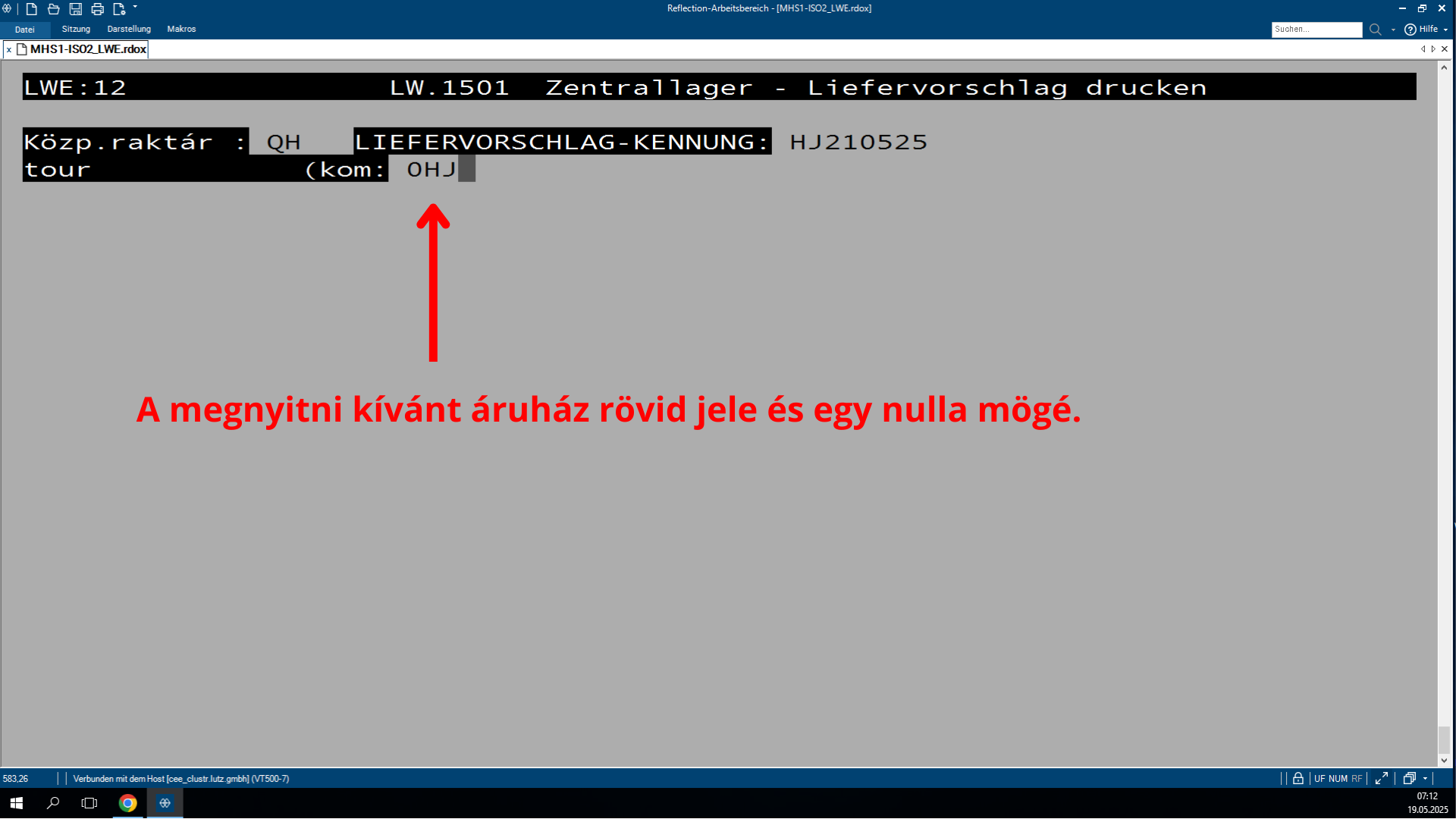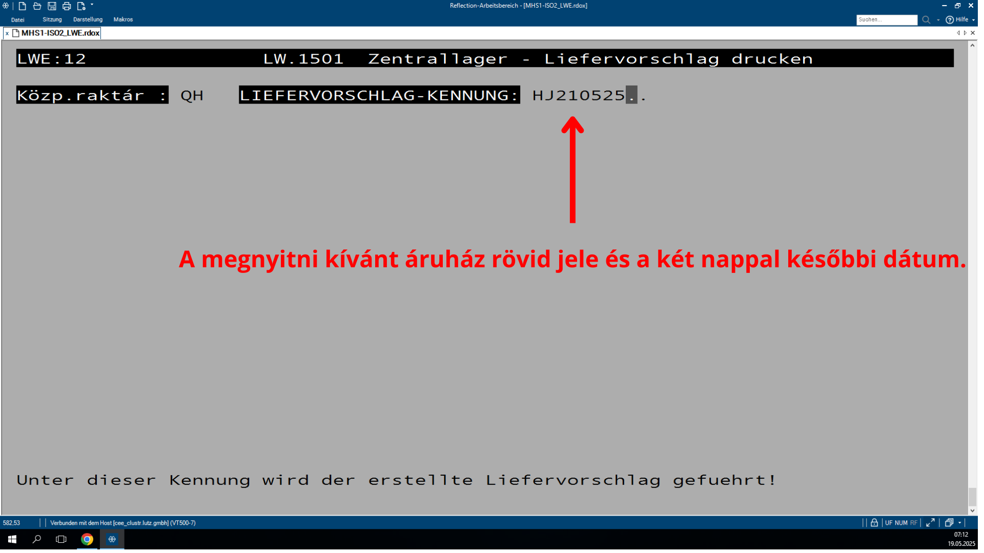 Lépj be az LW.1501 programba mind a saját SHD fiókodba, mind a raktár SHD fiókjába. Mindkét helyen az LW.1501 programot kell használnod. Raktár SHD fiókban: Az LW.1501 programban írj be egy 4-es számot. Visszalépés a saját fiókba: Ott szintén indítsd el az LW.1501 programot, és írj be egy 1-es számot. Ezután írd be annak az áruháznak a rövid jelét, amelynek le szeretnéd zárni a Liferét. Görgess le a lista legaljára, és jegyezd fel az Anzahl Container Filialénél lévő számot. Ezt az adatot írd fel egy külön listába, ahol vezeted, hogy az adott áruház hány korletát kér. A jobb felső sarokban másold ki a LIFERVORSCHLAG számát. Visszalépsz a raktár SHD fiókba és ott illeszd be a kimásolt LIFERVORSCHLAG értéket a megfelelő mezőbe. Add meg a mai dátumot ezt egy T betű beírásával teheted meg. Ezután nyomj meg egy "J" betűt, ezzel véglegesíted és lezárod az áruház Liferét.