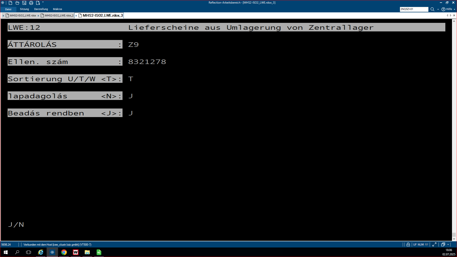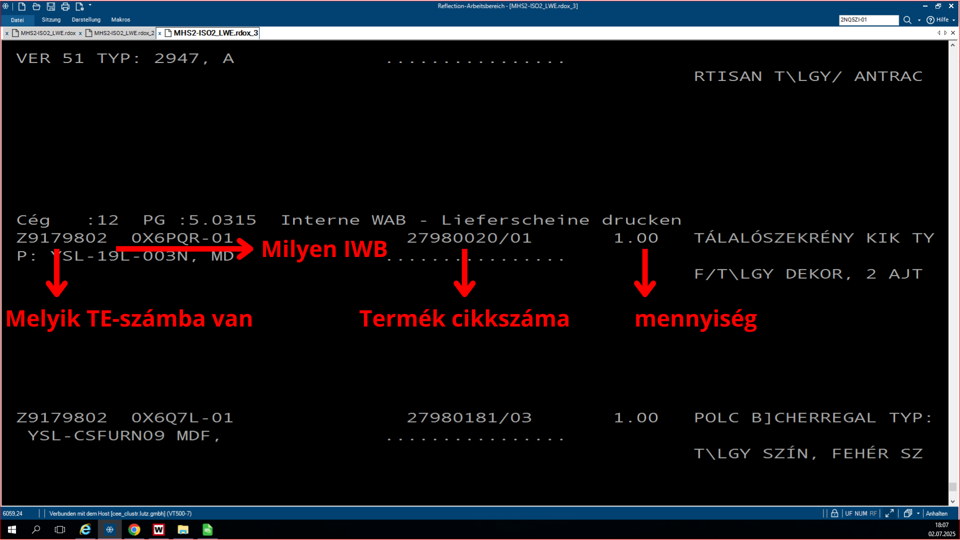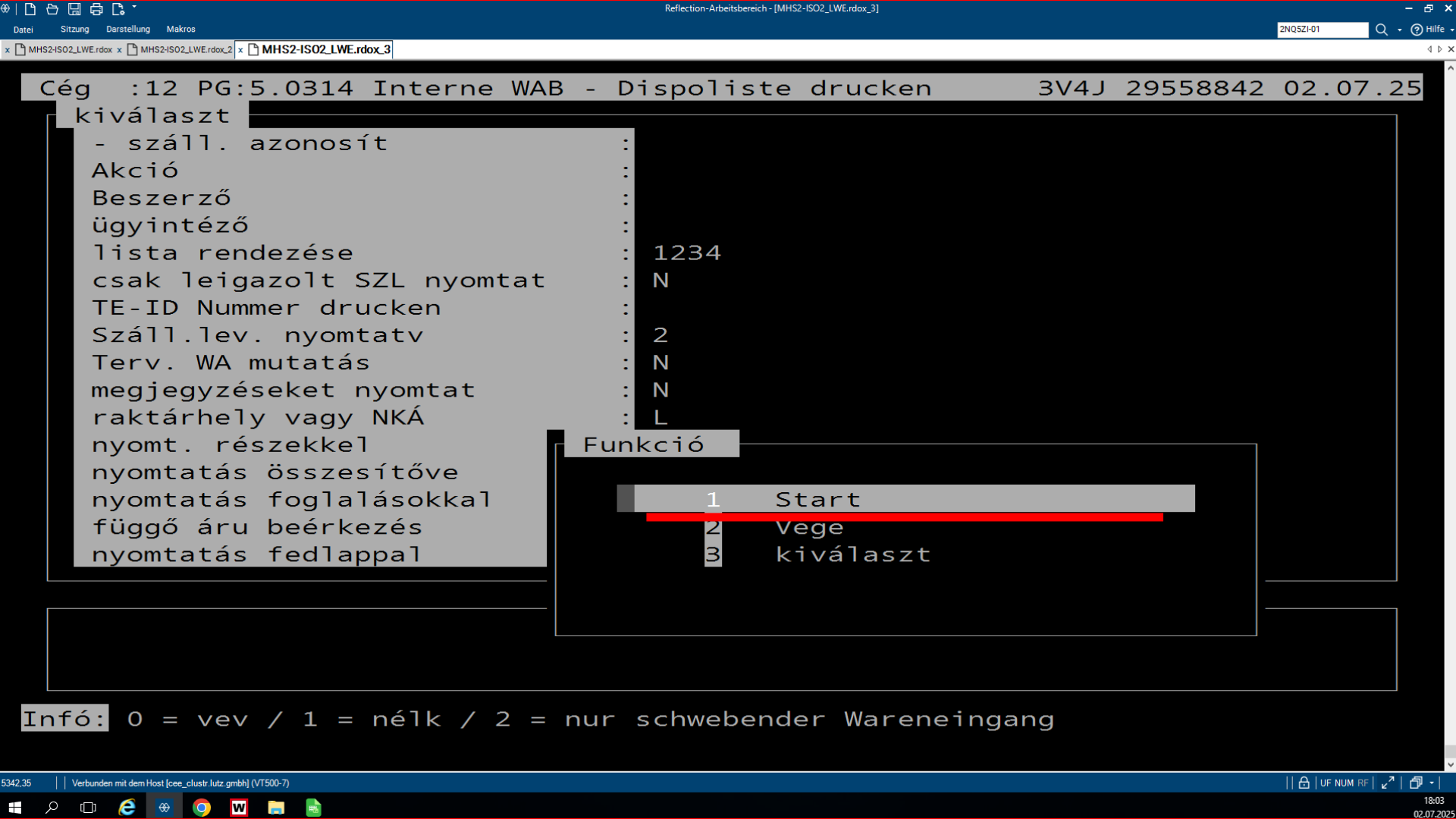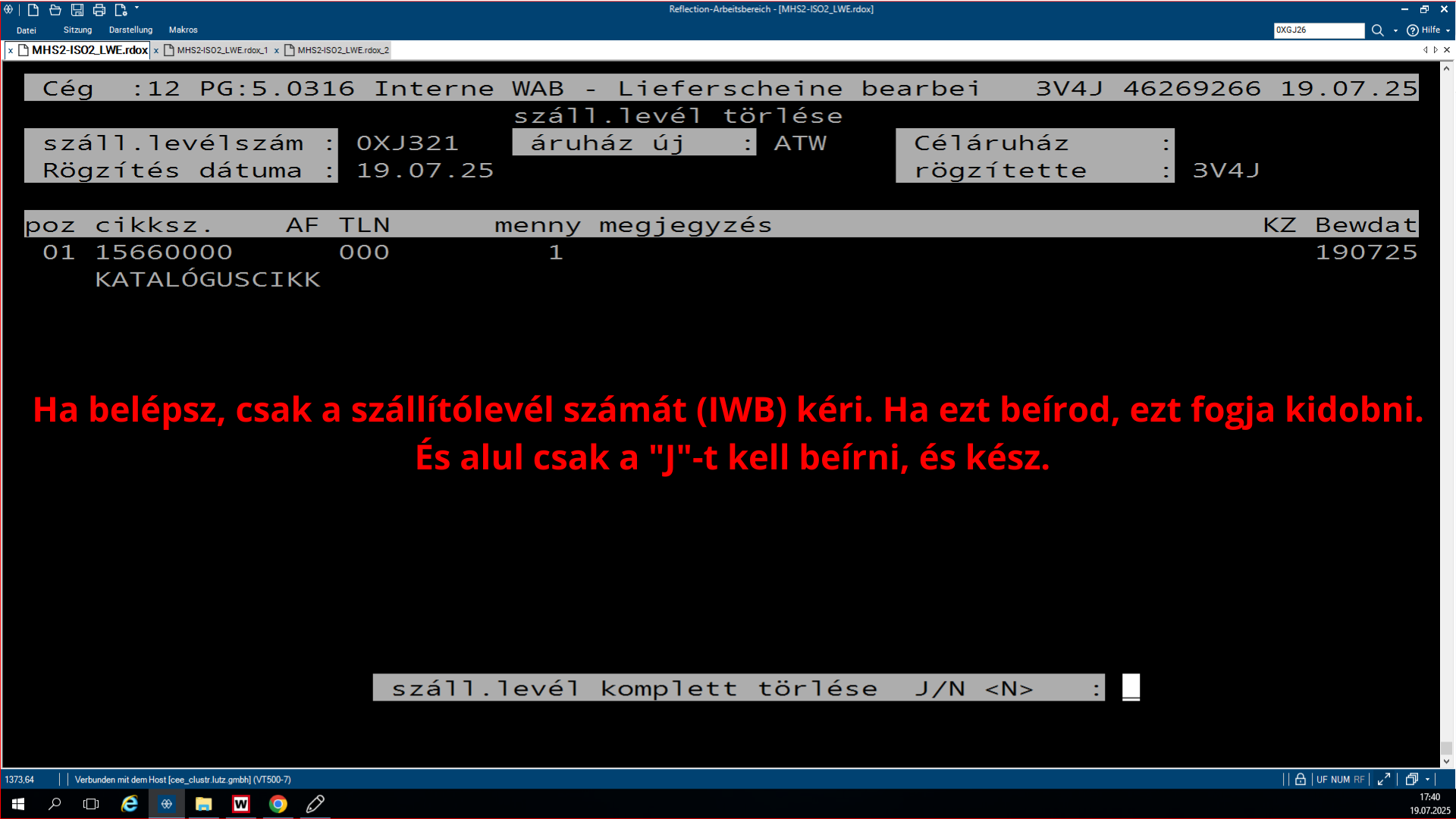 A plusz-minuszos lisztsá, ami az LW.0319-es program, egy olyan program, ami azért feláll, hogy összehasonlítsa az SHD készleteit a WAMASK készletre. Az, hogy éppen melyikből van plusz, melyikből van mínusz a másikhoz képest, és ezt lehet rajta megfigyelni. A pozitív lista az a lista, ahol az SHD-hoz képest a WAMAS-ba több a készlet bizonyos termékekből. Ha megnyitjuk a programot, rá kérdez, hogy a WAMAS vagy a Metalag programmal hasonlítsa össze az SHD készletet. Ha mi azt választjuk, hogy a WAMAS-t hasonlítsa össze, akkor rá kérdez, hogy melyik áruházal, áruház rövidjelét megkérdezi. Ezután kidob kettő opciót, ott egyszerűen le enterezzük, mert nem szükséges nekünk. Ezután rá kérdez, hogy melyik napnak a listáját hozza ki, mivel ez egy jobb kettes lista, mindig éjfélkor dolgozódik fel. És megkérdezi, hogy a plusz vagy a negatív listát szeretnéd lekérdezni. Ha itt kiválasztod az adottat, amit kell neked, utána megkérdezi, hogy a beadás rendben-e. Beírod, hogy J. Aztán megmutatja, hogy melyik nyomtatóra akarsz-e nyomtatni. Ha ez csak simán leenterezed és nem írsz be semmit, akkor ezután fel lehet görgetni az shd-ban, és fölül láthatod a cikkszámokat. Hogy milyen cikkszámból mennyi van az adottból a készleten. A bal oldali oszlopban láthatjuk a shd-ben mennyi van a készleten, és a jobb oldalon pedig a WAMAS-ban mennyi van bekönyvelve. Itt látjuk így az eltérést, és ki is írja, hogy melyik vásárolói szerződésben van lefoglalva az adott áru.