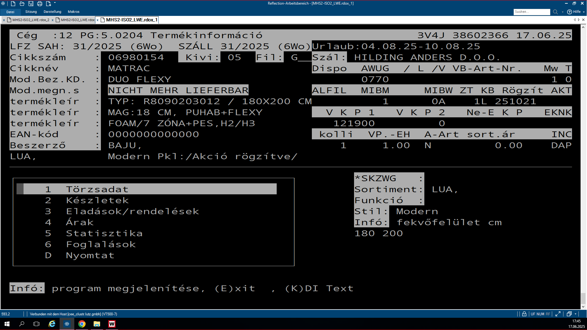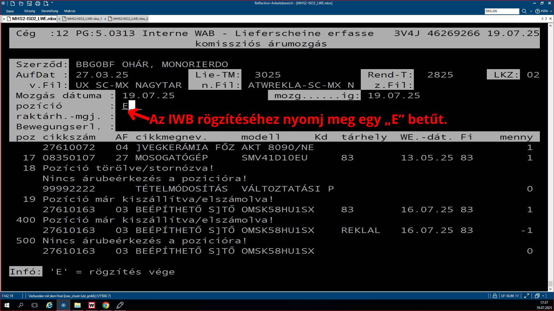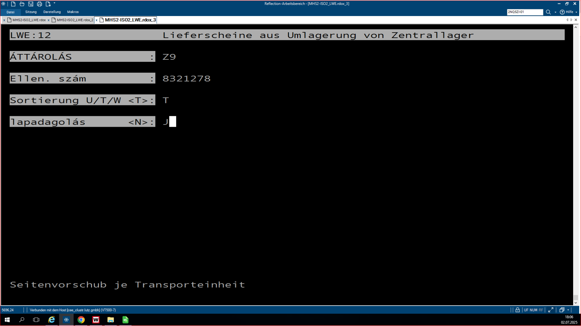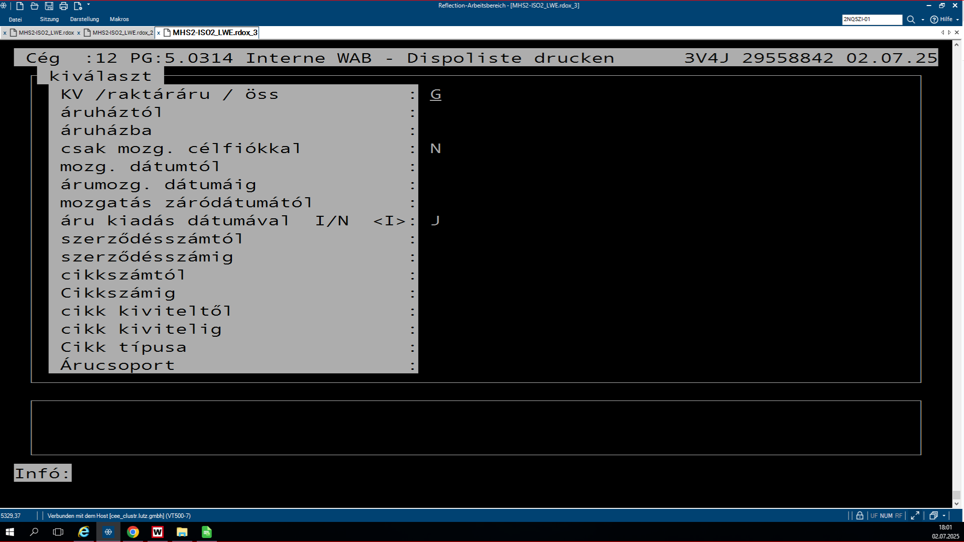 A plusz-minuszos lisztsá, ami az LW.0319-es program, egy olyan program, ami azért feláll, hogy összehasonlítsa az SHD készleteit a WAMASK készletre. Az, hogy éppen melyikből van plusz, melyikből van mínusz a másikhoz képest, és ezt lehet rajta megfigyelni. A pozitív lista az a lista, ahol az SHD-hoz képest a WAMAS-ba több a készlet bizonyos termékekből. Ha megnyitjuk a programot, rá kérdez, hogy a WAMAS vagy a Metalag programmal hasonlítsa össze az SHD készletet. Ha mi azt választjuk, hogy a WAMAS-t hasonlítsa össze, akkor rá kérdez, hogy melyik áruházal, áruház rövidjelét megkérdezi. Ezután kidob kettő opciót, ott egyszerűen le enterezzük, mert nem szükséges nekünk. Ezután rá kérdez, hogy melyik napnak a listáját hozza ki, mivel ez egy jobb kettes lista, mindig éjfélkor dolgozódik fel. És megkérdezi, hogy a plusz vagy a negatív listát szeretnéd lekérdezni. Ha itt kiválasztod az adottat, amit kell neked, utána megkérdezi, hogy a beadás rendben-e. Beírod, hogy J. Aztán megmutatja, hogy melyik nyomtatóra akarsz-e nyomtatni. Ha ez csak simán leenterezed és nem írsz be semmit, akkor ezután fel lehet görgetni az shd-ban, és fölül láthatod a cikkszámokat. Hogy milyen cikkszámból mennyi van az adottból a készleten. A bal oldali oszlopban láthatjuk a shd-ben mennyi van a készleten, és a jobb oldalon pedig a WAMAS-ban mennyi van bekönyvelve. Itt látjuk így az eltérést, és ki is írja, hogy melyik vásárolói szerződésben van lefoglalva az adott áru.