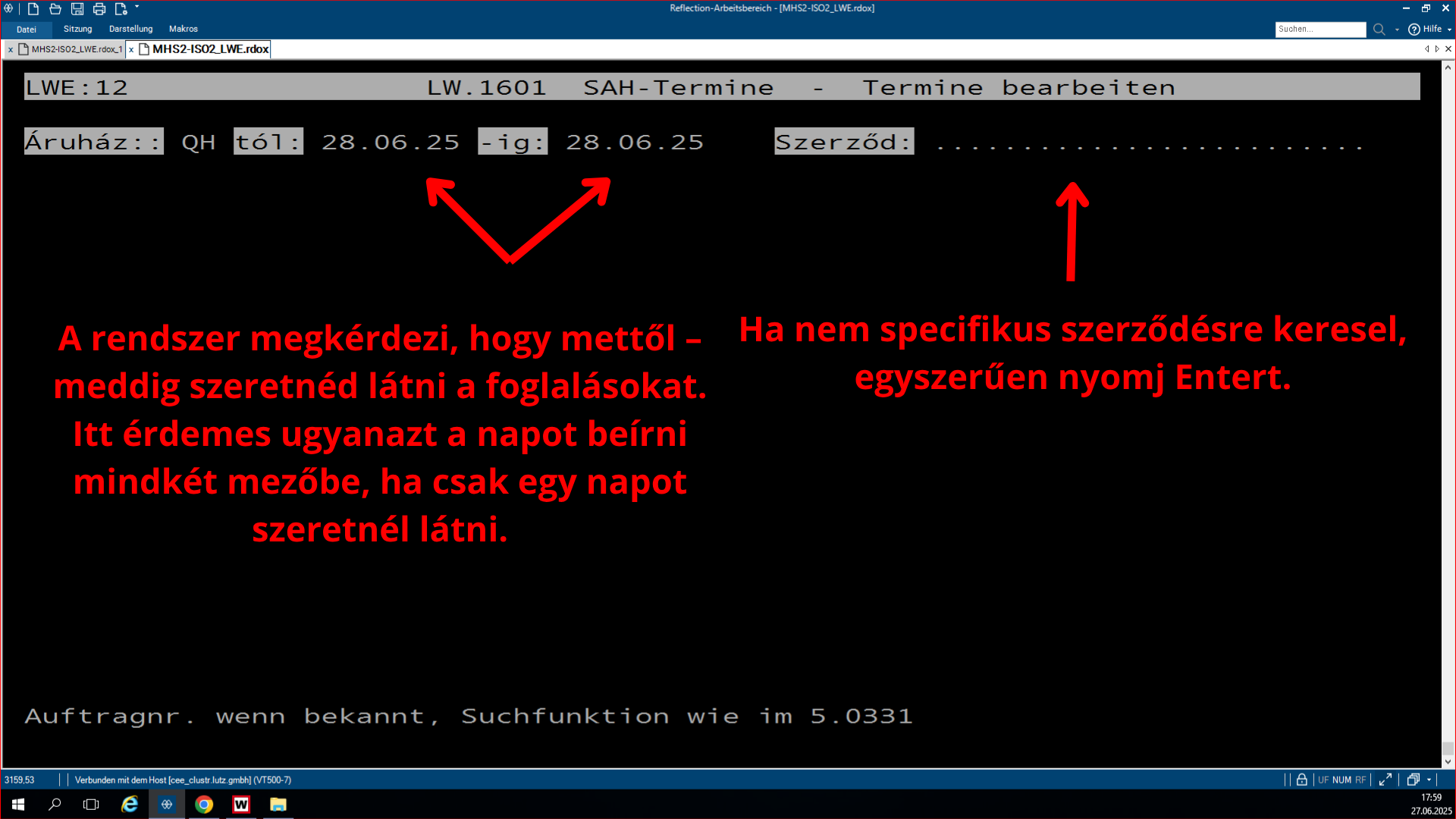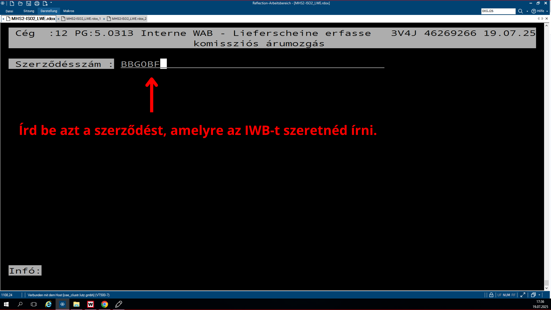 Ebben a programban az az első feladatunk, hogy beírjuk a 6 jegyből álló szerződésszámot (nem felejtjük el, hogy a vásárlóké 6, mert az idegekre hatnak, míg a lagereké 5, de erre még az 5.0332-ben visszatérünk. ezt amiatt fontos megjegyezni mivel minden vásárlói szerződés 6 jegyből áll.).