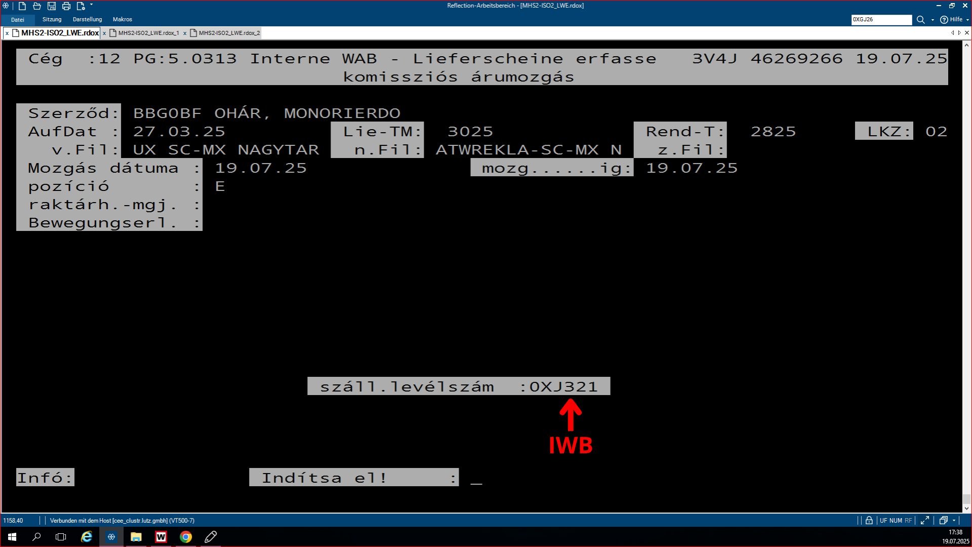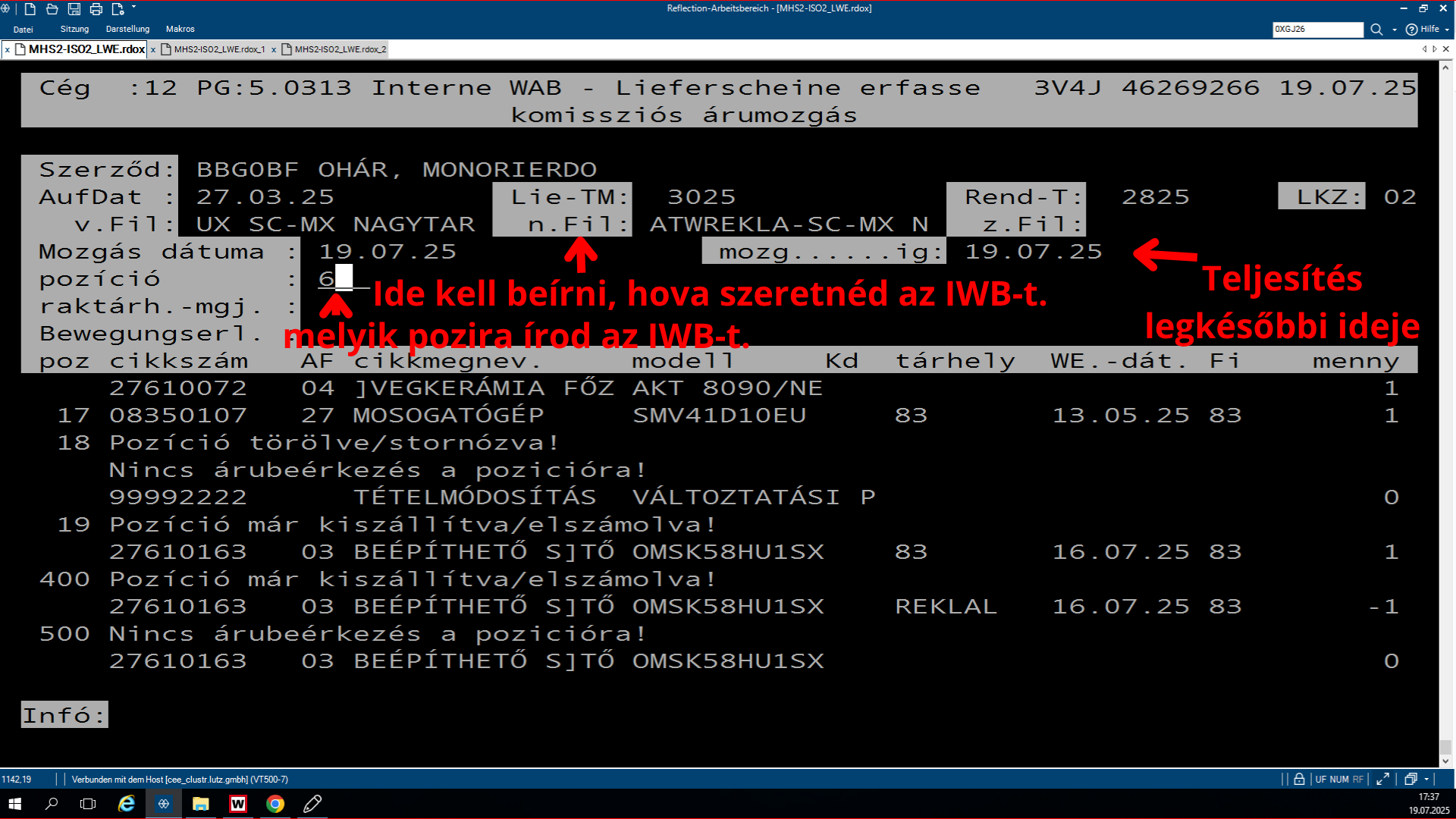 Az árubeérkezés (5.0322) során vissza kell hivatkozni erre az LB számra.