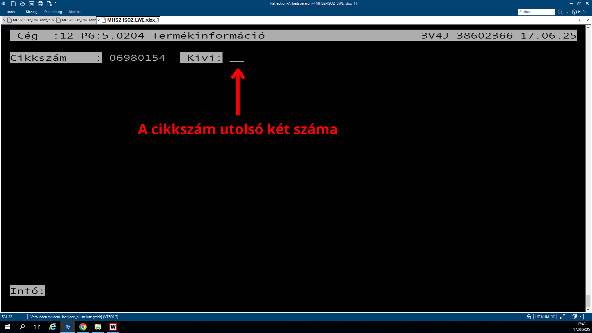 - Ha szkennerre küldjük (Anfordern), akkor „LOS” felirat jelenik meg.