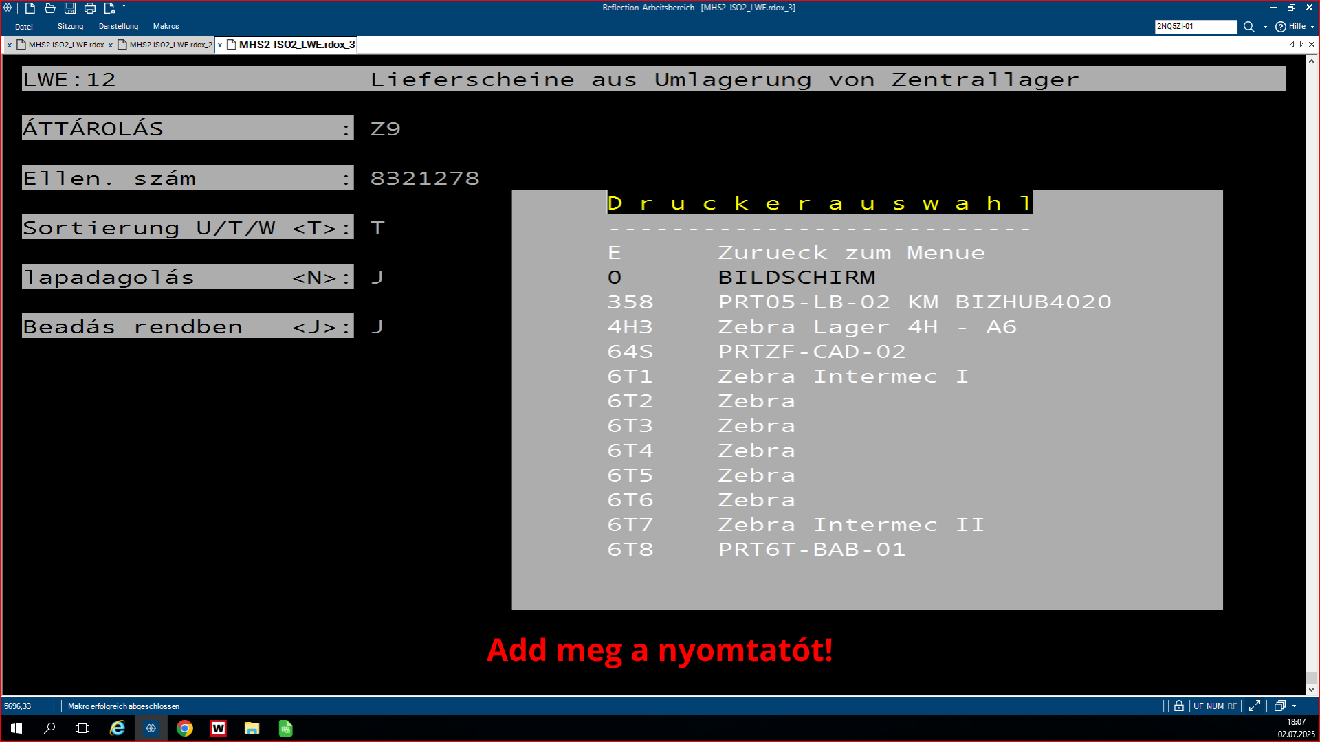 Az 5.0315 által kinyomtatott adatok ellenőrzésre is szolgálnak, különösen a centrálos szállítólevelek esetén. Ehhez az 5.0314-es programból lekérdezhető IWB lista szükséges.