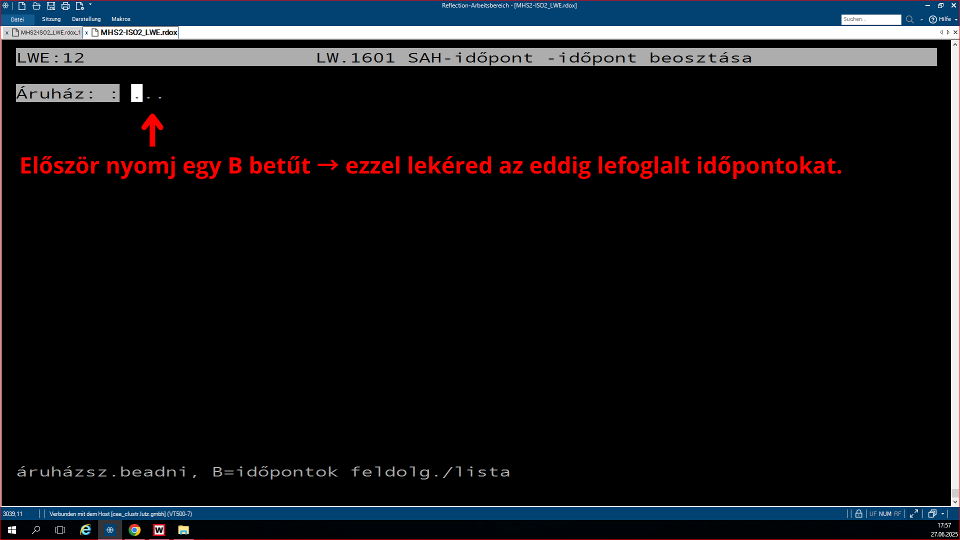 Először nyomj egy B betűt → ezzel lekéred az eddig lefoglalt időpontokat.