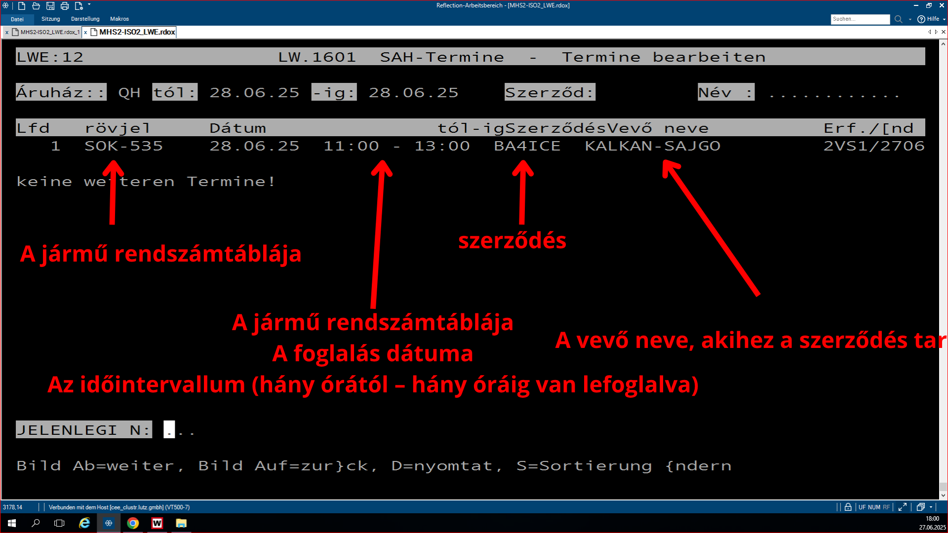 Ez a program belső, raktári megrendelések létrehozására szolgál, nem vevői szerződésről van szó, hanem áruházi vagy központi raktár által generált megrendelésről, amit például készletfeltöltés vagy hiány pótlása miatt adnak le. Az „LB” (Lagerbestellung) utal arra, hogy nem vásárló megrendelése, hanem belső raktári folyamat.