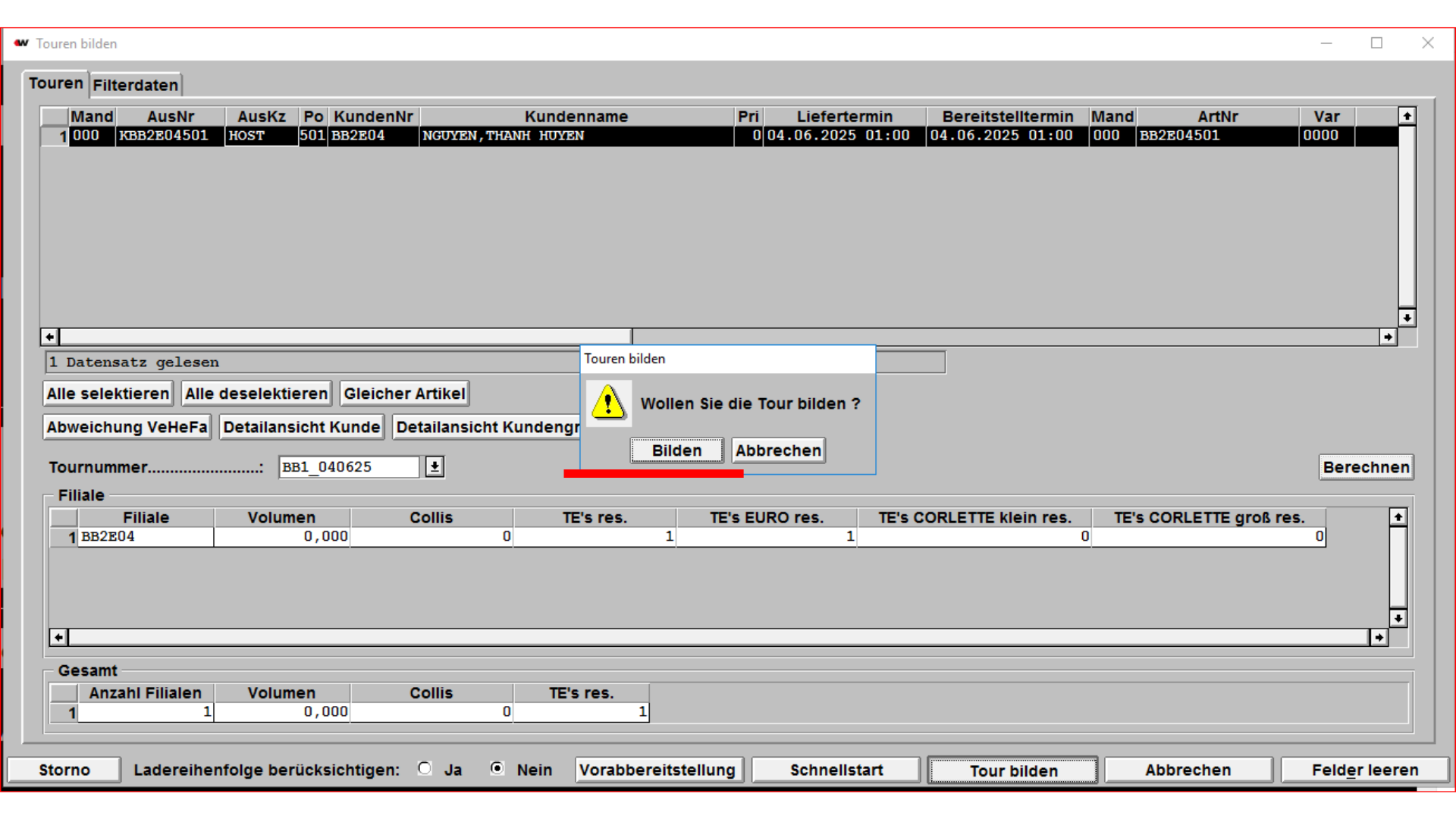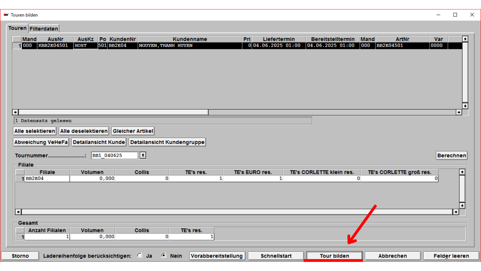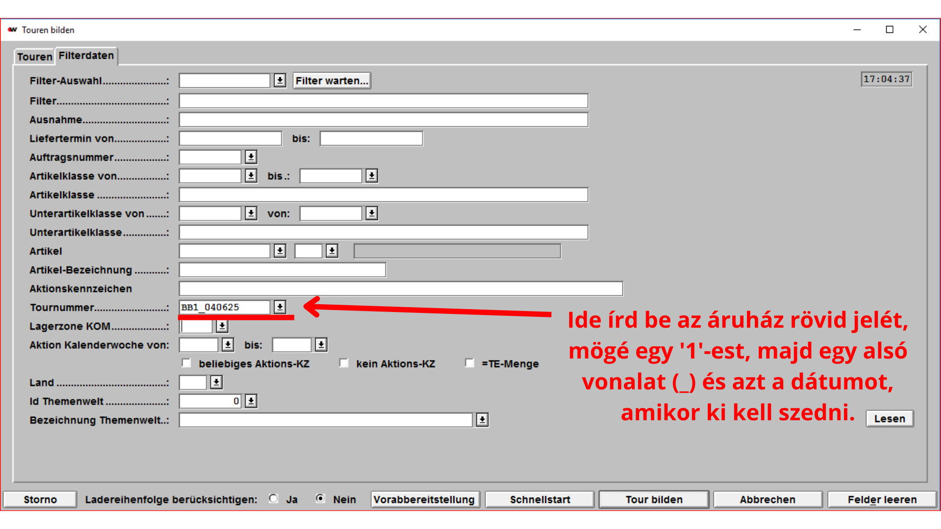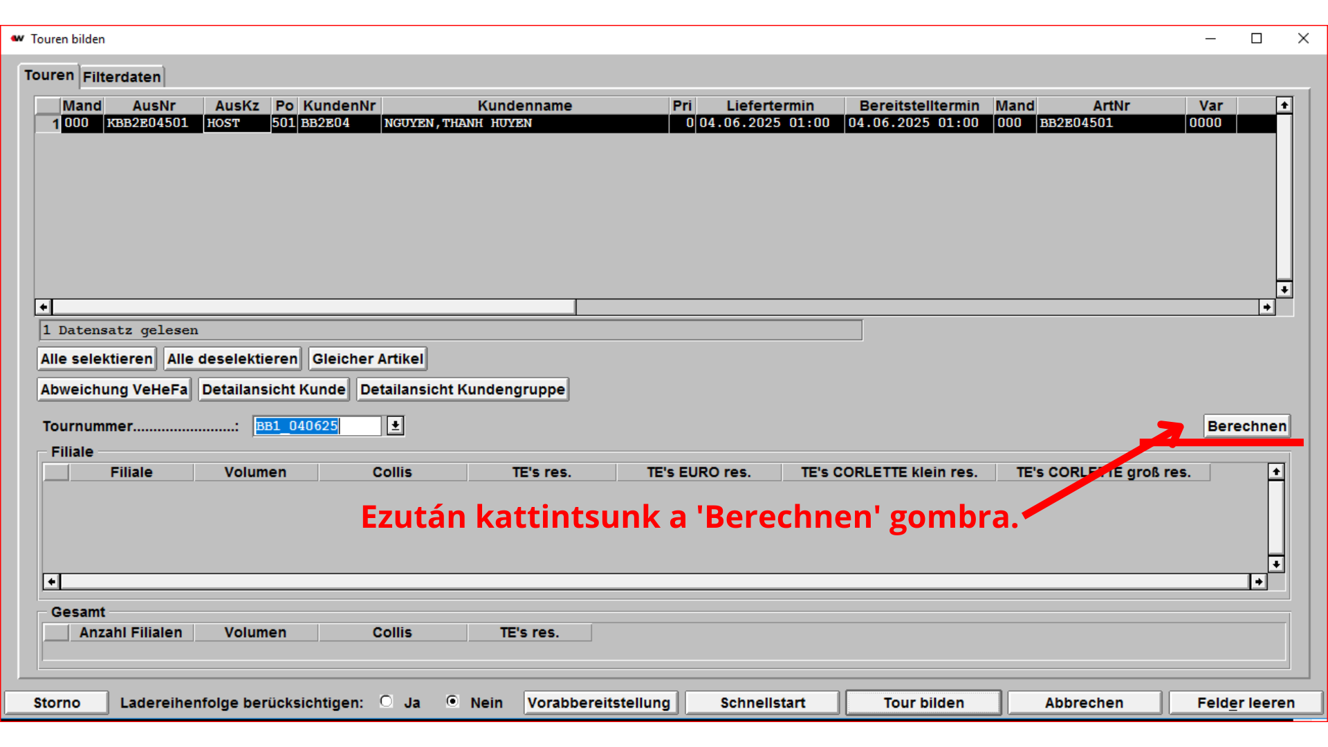 A túra indítása úgy működik, hogy be kell lépni a BEWEGUNGEN → TOUREN menübe. Ott ki kell jelölni (rá kell kattintani) egy már megépített túrát, majd a Start gombra kattintani. Ezután ki kell választani a Ziel-t, és megadni, hogy hova érkezzen meg a túra – például ha a Taxi boxba, akkor a WAM-1-et kell bejelölni. Miután ezt beírtad, a Übernehmen gombra kell kattintani, és kész is.